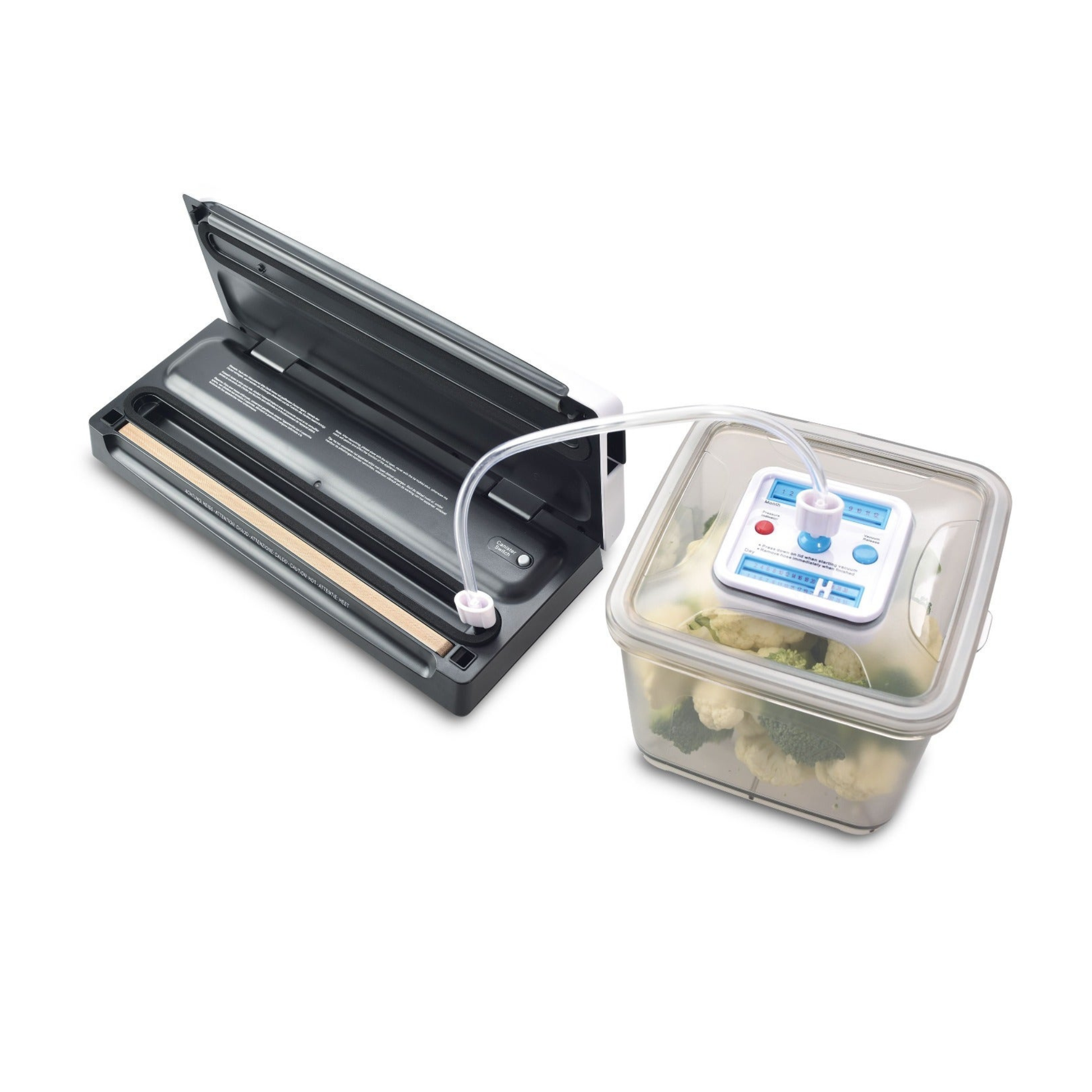 Volautomatisch en eenvoudig te gebruiken vacuümsysteem voor het conserveren van voedsel, sous-vide koken en meer.